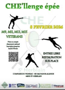 Compétition d’Escrime – 8 février 2026 à Saint-Herblain 16 janvier 2026 Compétition le 8 février 2026 de 9h à 17h. Finale vers 16h L’entrée est gratuite Renseignements au 0614703006 Lire la suite »